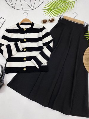 İpek Tutuş Çizgi Detaylı Triko Takım