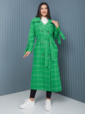 Sahra Afra Yeşil Ekose Kadın Oversize Trençkot