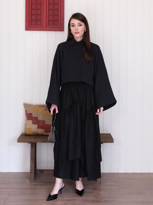 Ceylan Otantik Siyah Kat Detay Bohem Etek