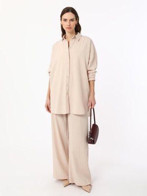 Refka Krem Kendinden Çizgili Rahat Kalıp İkili Takım