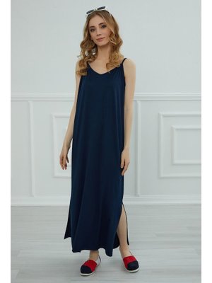 Aisha`s Design Lacivert Askılı Penye Elbise,elb