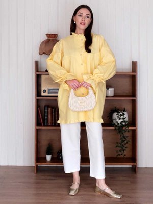Ceylan Otantik Sarı Karamel Kolu Büzgülü Gömlek