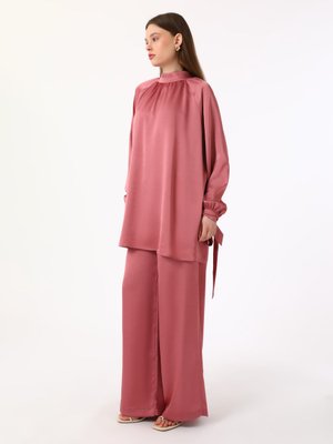 Refka Koyu Gül Saten Bağlama Detaylı Tunik & Pantolon İkili Takım
