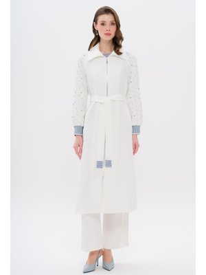Olcay Ekru Kolları Taş Ve Ribana Detaylı Kapitone Desenli Hafif Kap