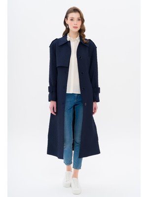 Olcay Lacivert Pelerin Ve Apolet Detaylı Kapitone Desenli Hafif Trençkot