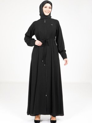 Beyza Siyah Fermuarlı Kloş Ferace