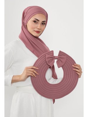 Aisha`s Design Gül Kurusu Çıkarılabilir Arkası Fiyonklu Şapkalı Pratik Krep Şal Türban,ss