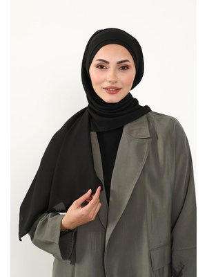 Aisha`s Design Siyah Önü Pileli Tasarım Krep Pratik Şal,ps