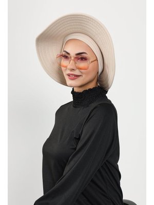 Aisha`s Design 10sn Bej Çıkarılabilir Arkası Fiyonklu Şapkalı (deniz,havuz) Yüzücü Bonesi,s