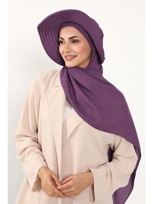 Aisha`s Design Mor Çıkarılabilir Arkası Fiyonklu Şapkalı Pratik Krep Şal Türban,ss