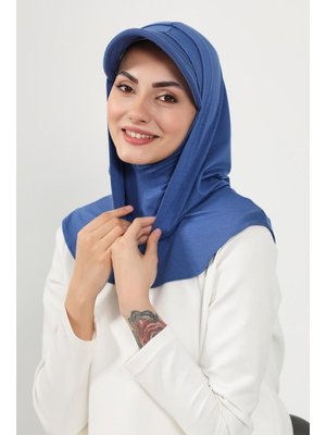 Aisha`s Design 88p İndigo Siperlik Ve Kapatıcı Özellikli Penye Hazır Bone,b