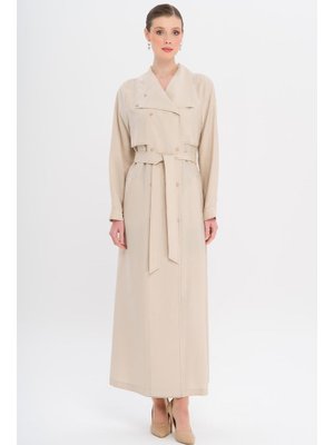Olcay Mendil Yaka Pelerin Ve Çıt Detaylı Astarsız Modal Kap Taş