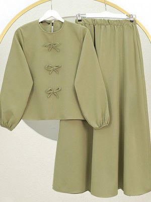 HİJABAYA Haki Fiyonk Detaylı Kolu Lastikli Etekli İkili Takım