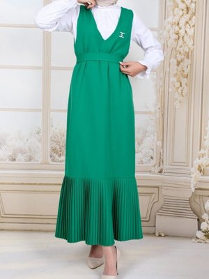 HİJABAYA Orman Yeşili Eteği Piliseli Kuşaklı Jile