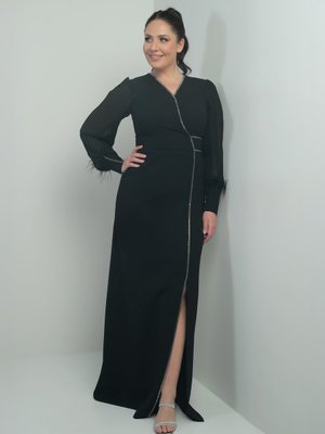 By Saygı Siyah Büyük Beden Abiye Elbise