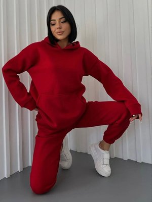 Swana Koyu Kırmızı Owersize Kalın Üç İplik Şardonlu Eşofman Takım