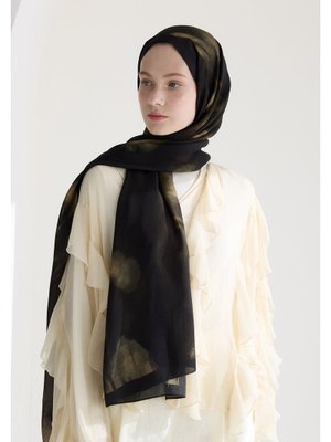 FRESHSCARFS Siyah Polly Floş Viskon Şal