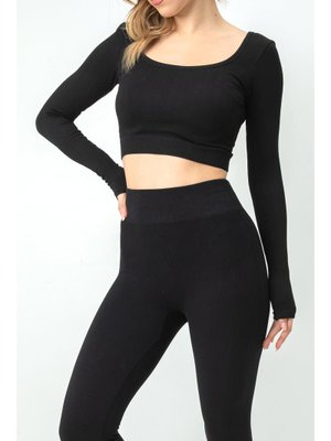 DoReMi Seamless Straplez Uzun Kollu Fitilli Büstiyer Siyah Melanj
