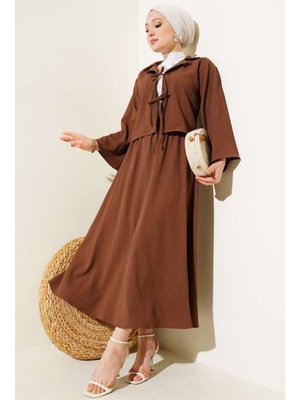 Volt Clothing Kahverengi Ceket Yaka Ağaç Kabuğu Dokulu Etekli Takım
