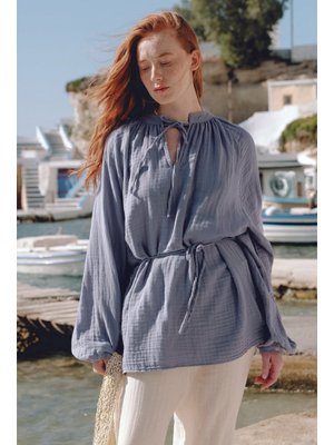 MANUKA Mavi Müslin Bağlamalı Bluz
