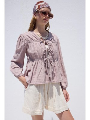 MANUKA Lila Bağlama Detaylı Müslin Bluz
