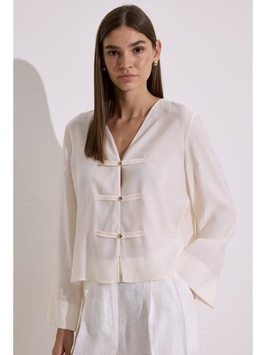MANUKA Ekru Modal Geniş Kollu Bluz