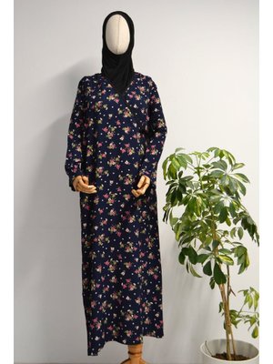 Bilenler Beden Çiçek Desenli Kruvaze Namaz Elbisesi – Viskon, Yandan Bağlamalı