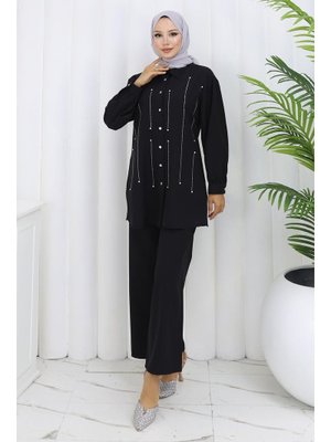 MODAMİHRAM Siyah Taş Detaylı Takım