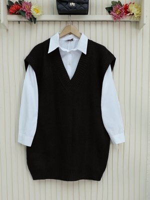 Podyumplus Siyah V Yaka Geniz Ribanalı Prinç Örme Uzun Süveter