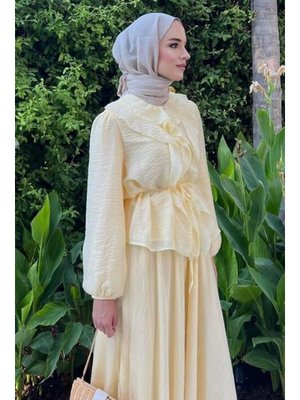 Podyumplus Fırfır Yaka Detaylı Takım Pembe