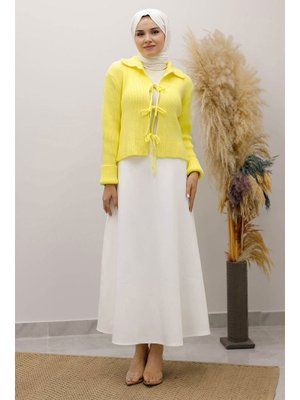 Tesettür Dünyası Sarı Bağcıklı Triko Hırka