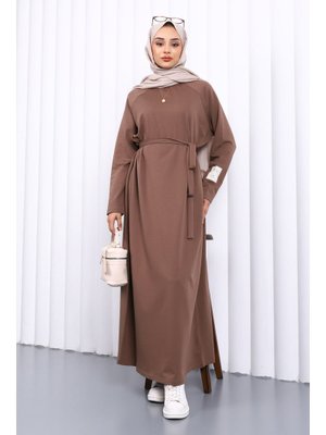 İmaj Butik Koyuv Vizon Bisiklet Yaka Bel Kuşaklı Elbise