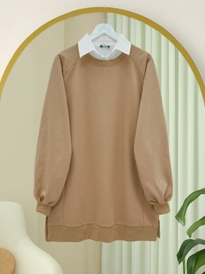 Podyumplus Vizon İki İp Yırtmaçlı Parçalı Salaş Penye Tunik