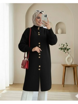 Podyumplus Siyah Önü Düğmeli Uzun Sakallı Yumoş Hırka