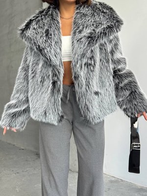 XXL BUTİK Gri İthal Kumaş Kalite Kürk Kaban