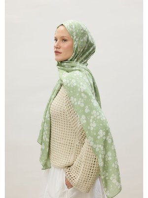 FRESHSCARFS Açık Yeşil Papatya Desen Rami Şal