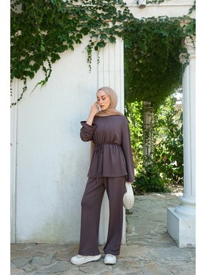 Locco Moda Kahverengi Bel Bağlamalı İkili Takım