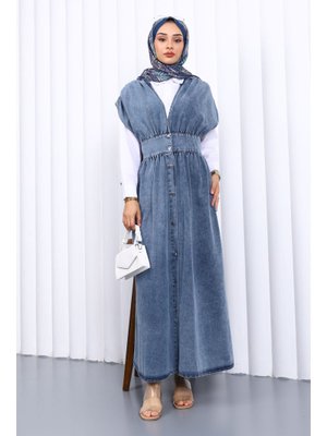 İmaj Butik Mavi Kruvaze Yaka Düğmeli Kot Elbise