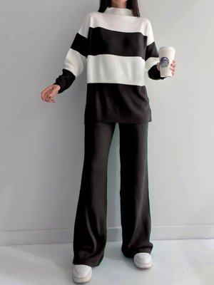 Podyumplus Siyah Yarım Boğazlı Triko Takım
