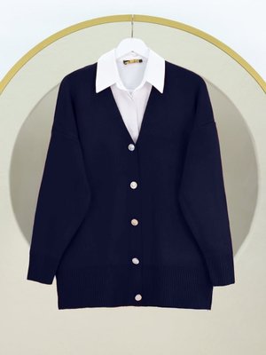 Podyumplus Laci V Yaka Düğmeli Triko Hırka