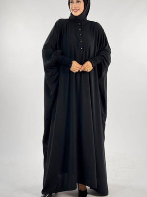 Bilenler Düğme Detaylı Yarasa Kol Medine İpeği Cilbab