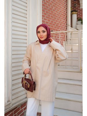 Locco Moda Krem Kruvaze Yaka Keten Ceket