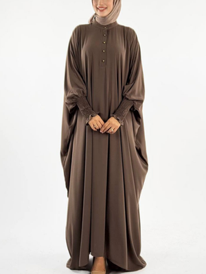 Bilenler Düğme Detaylı Yarasa Kol Medine İpeği Cilbab