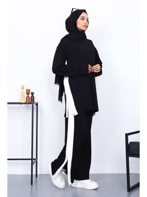 İmaj Butik Siyah Renk Bloklu Modal Tunik Pantolonlu Takım