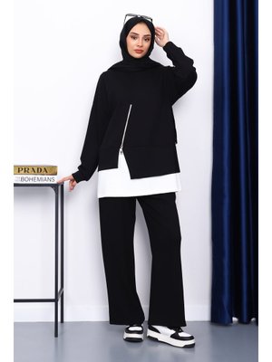 İmaj Butik Siyah Fermuar Detaylı Modal Tunik Pantolonlu Takım