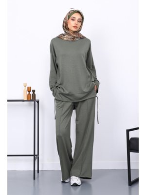 İmaj Butik Haki Ön Detaylı Modal Tunik Pantolonlu Takım