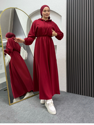 Ensa Tesettür Bordo Kapüşonlu Elbise