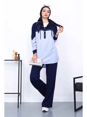 İmaj Butik Lacivert Gömlek Garnili Pantolonlu Takım