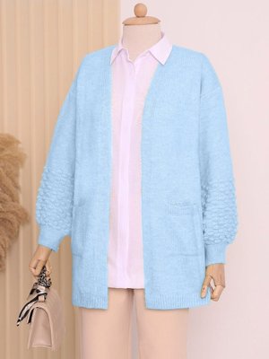Podyumplus Bebe Mavi Balon Kol Kolu Ponponlu Cepli Hırka
