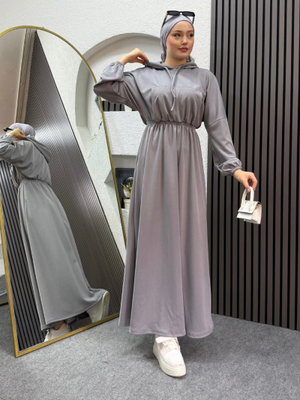 Ensa Tesettür Gri Kapüşonlu Elbise
